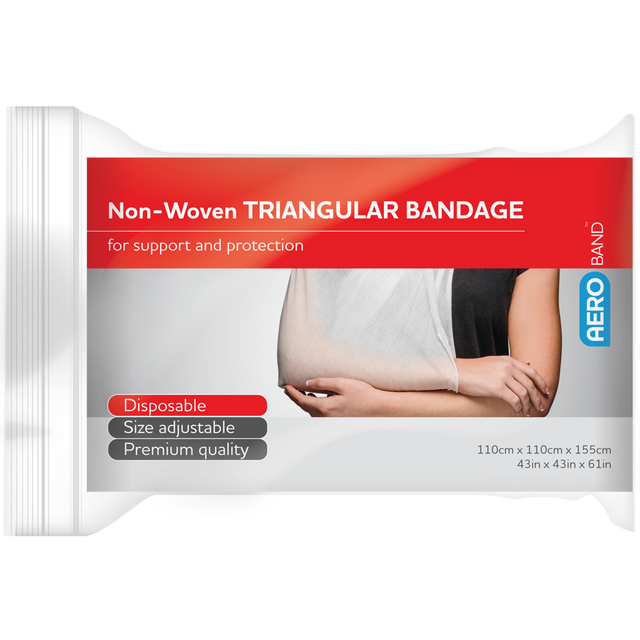 AEROBAND Triangular Bandages are a must have item for every first aid kit, for the immobilisation and support of arms, shoulders and ribs.